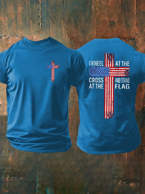Men's I Kneel At The Cross And Stand At The Flag Print T-Shirt