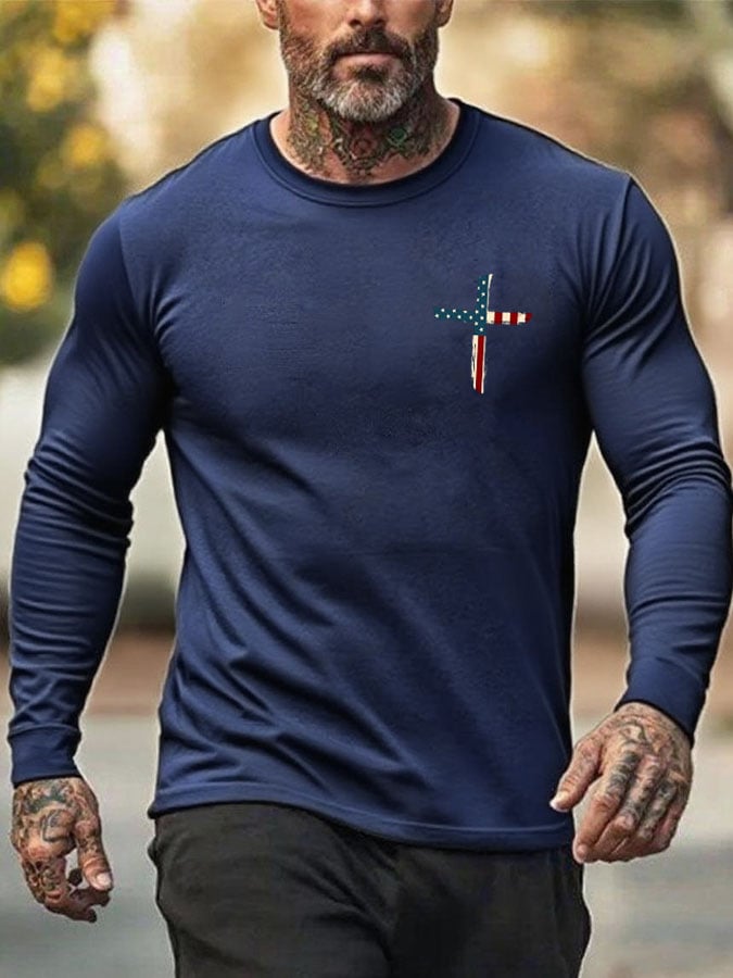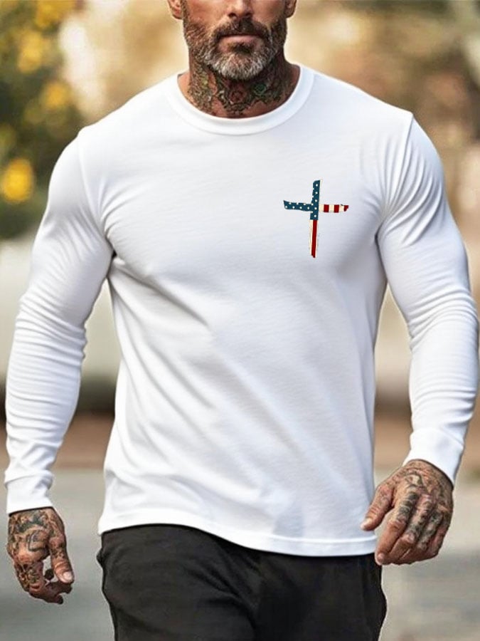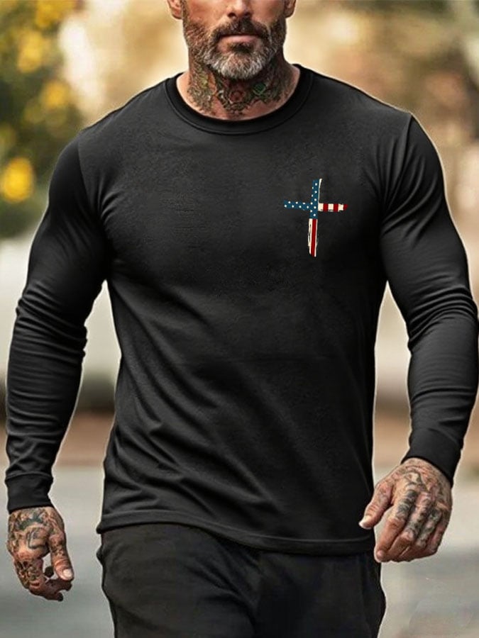 🔥Buy 3 Get 15% Off🔥Men's Stand For The Flag Kneel For The Cross Print T-Shirt