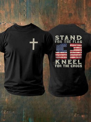 Men's Stand For The Flag Kneel For The Cross Print T-Shirt
